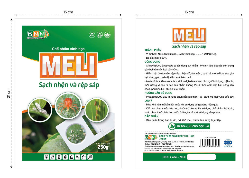 Chế phẩm Meli có thể giúp kiểm soát các loại sâu bệnh hại cây trồng mà không gây hại đến môi trường hay sức khỏe con người. Các vi sinh vật có trong Meli giúp tiêu diệt sâu bệnh mà không làm ô nhiễm đất, nước.