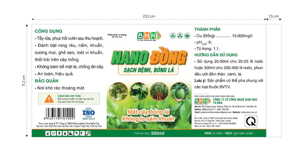 Bảo vệ môi trường và an toàn cho người sử dụng: Chế phẩm sinh học này được sản xuất từ các thành phần tự nhiên, nên an toàn cho sức khỏe con người và động vật. Đồng ở dạng nano có khả năng giảm thiểu độc tính, giúp cây trồng hấp thụ hiệu quả mà không gây ô nhiễm môi trường.