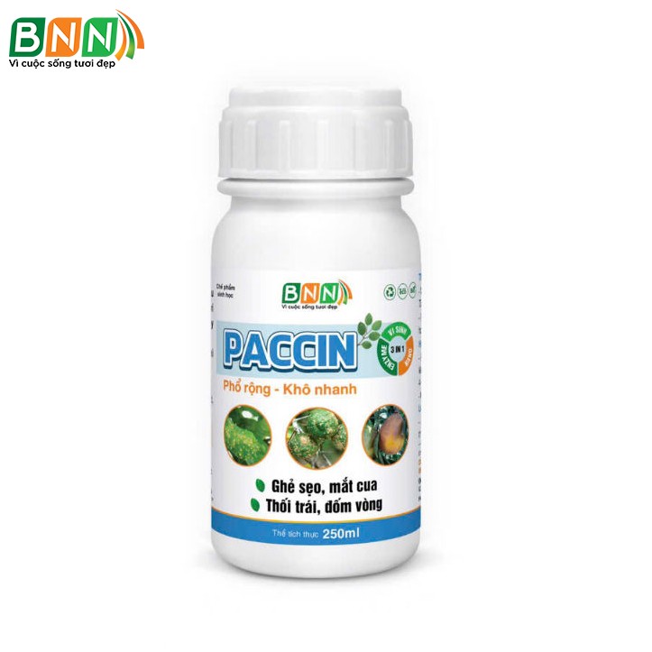 Chế phẩm sinh học paccin, trị ghẻ, xử lý nấm bệnh gây nên triệu chứng ghẻ sẹo,nấm bã trầu, loét vi khuẩn, đốm vòng, mắt của trên cây có múi, chế phẩm sinh học paccin đồng hành cùng nhà nông.